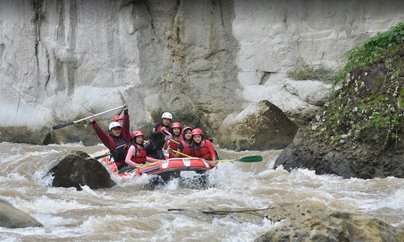Rafting adalah aktivitas yang wajib dicoba untuk memacu adrenalin di Bandung. Arus sungainya cukup deras namun aman untuk pemula karena ada instruktur yang mendampingi. Kamu akan melewati tikungan tajam, jeram menantang, dan percikan air yang membuat pengalaman semakin seru.