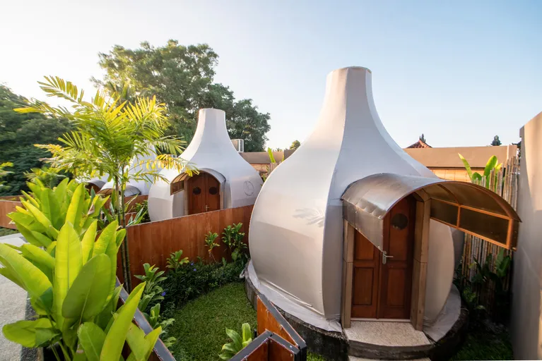 Unit glamping di Triyana tersedia dalam beberapa tipe, termasuk private pool dan tipe taman yang lebih tenang dan hijau. Suasana yang harmonis dengan alam membuat glamping ini serasa menjadi rumah kecil di tengah tropis. Glamping ini sangat cocok untuk liburan bersama pasangan atau keluarga.