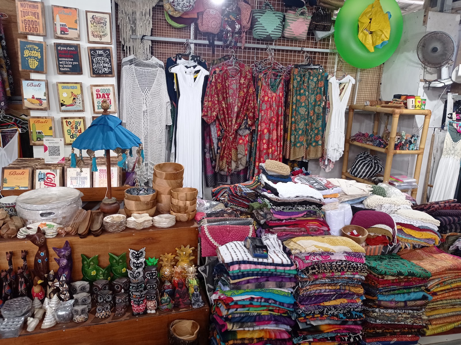 Kamu bisa menemukan celana pantai, kaus dengan desain khas Bali, tas rotan, udeng (ikat kepala tradisional), hingga sarung Bali yang warnanya mencolok. Variasi produknya sangat beragam, dan suasananya yang ramai bikin pengalaman belanjamu makin menyenangkan.
