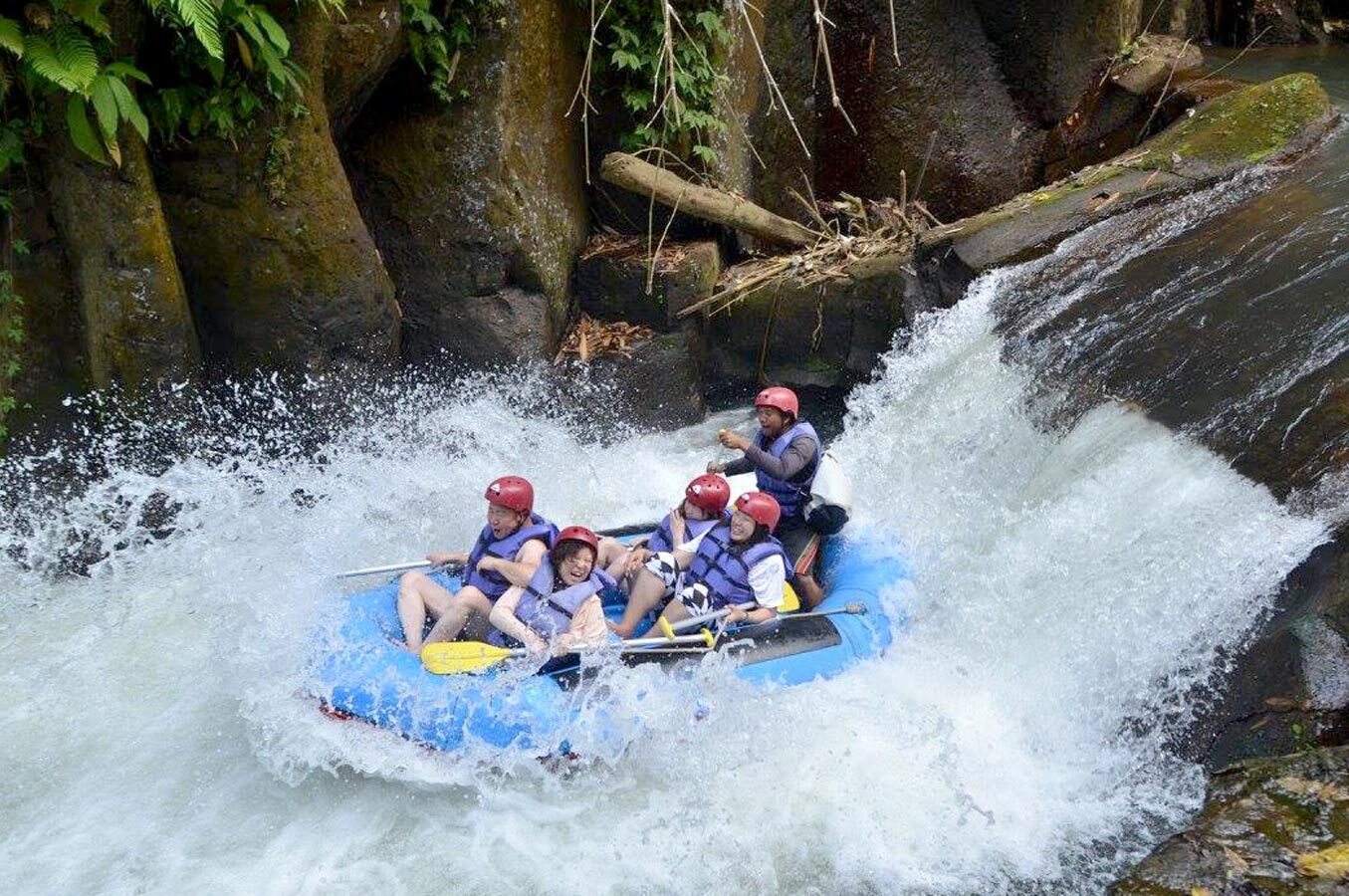 Sungai Ayung di kawasan Ubud dikenal sebagai lokasi rafting paling populer di Bali. Jalur ini sangat cocok untuk pemula maupun keluarga karena arusnya relatif stabil namun tetap memberikan sensasi petualangan yang menyenangkan.