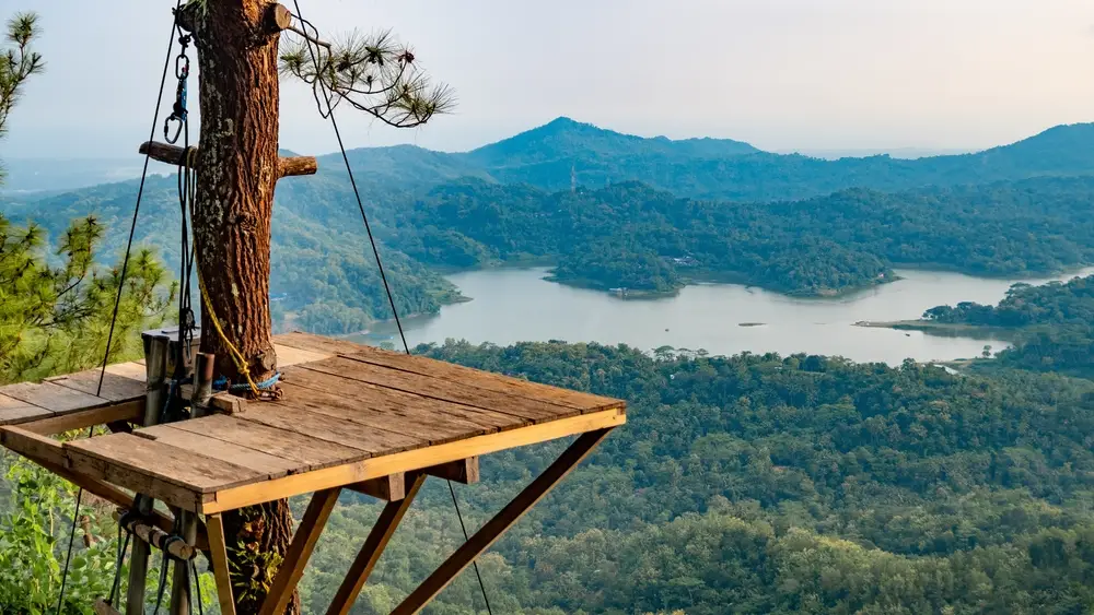 Saat malam tiba, kamu bisa menikmati view citylight Yogyakarta yang memukau dari ketinggian. Dilengkapi spot foto ikonik seperti tangan raksasa dan sarang burung, camping di sini bukan cuma seru tapi juga instagramable! Tiket masuknya pun murah, mulai Rp5.000 aja.