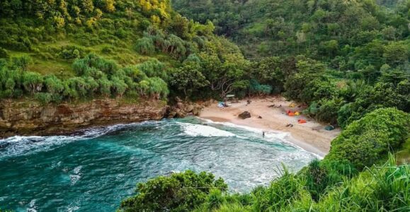 Pantai ini berada di Desa Purwodadi, Kapanewon Tepus, Gunungkidul, dengan tiket masuk hanya sekitar Rp5.000. Fasilitas yang tersedia cukup lengkap, mulai dari area parkir, kamar mandi, musala, hingga lokasi khusus untuk mendirikan tenda.