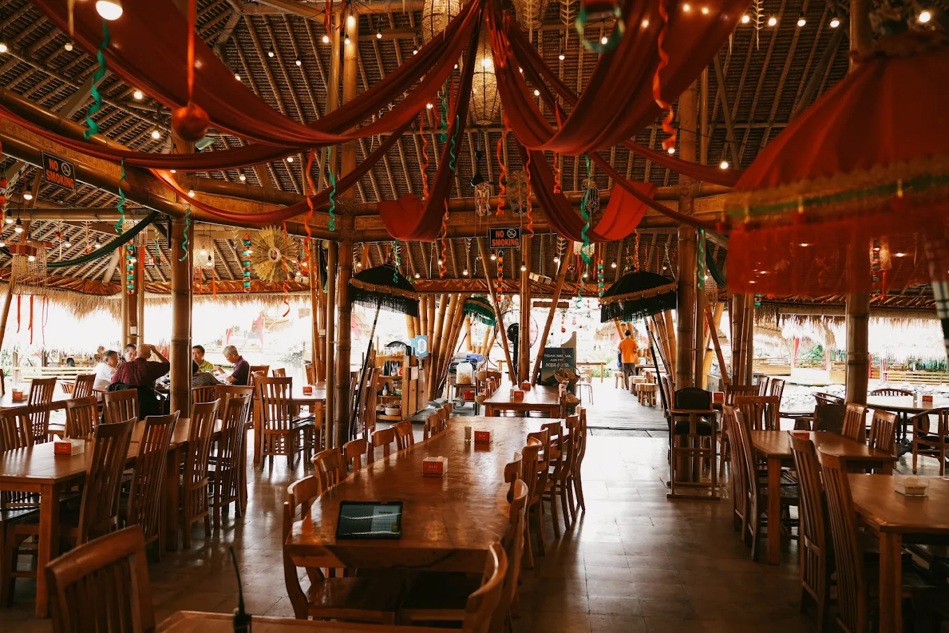 Kalau konsep gathering kamu lebih santai dan kekeluargaan, Bale Udang Kuta bisa jadi opsi menarik. Restoran ini punya konsep unik berupa gubug di atas kolam ikan yang membuat suasana terasa lebih hangat dan nyaman.