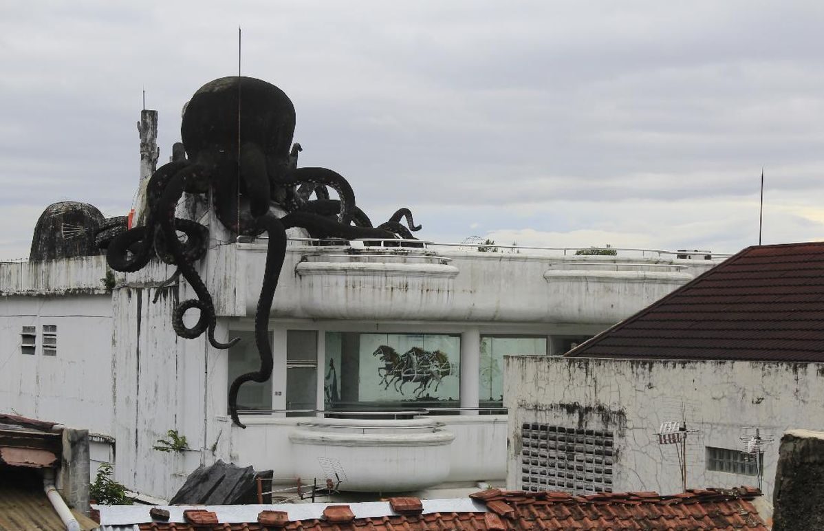 Rumah ini sempat viral karena adanya patung gurita raksasa di bagian atap serta nomor rumah “666” yang memicu berbagai spekulasi. Rumor yang berkembang menyebutkan rumah ini sebagai tempat pemujaan, meski pemiliknya sudah menegaskan bahwa patung tersebut hanyalah karya seni sekaligus penutup tandon air.